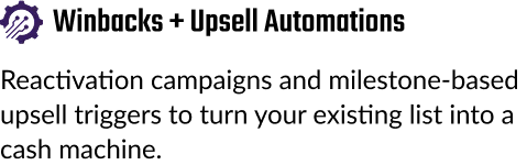 Winbacks, past-lead promos, and upsell triggers live First “dead” lead converts to sale. First upsell booked.